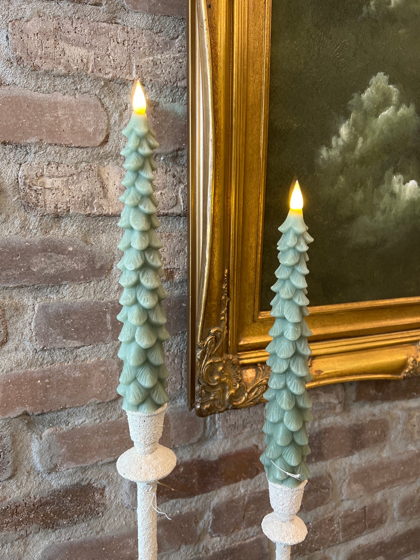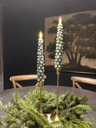 The perfect holiday candle tapers made of real wax. Battery operated with an automatic timer of six hours. Take two AAA batteries each. 12 inches long.