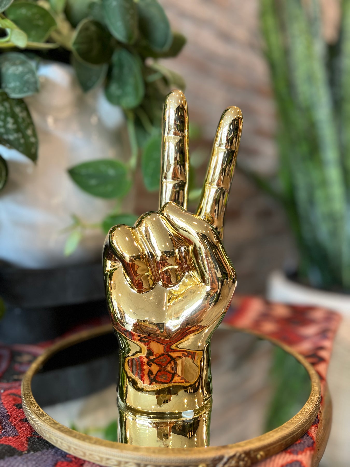 Handmade porcelain hand sculptures. Perfect for your shelfie. Made to sit on a table, too heavy to be used as an actual tree topper unless tree is modified to hold it upright.