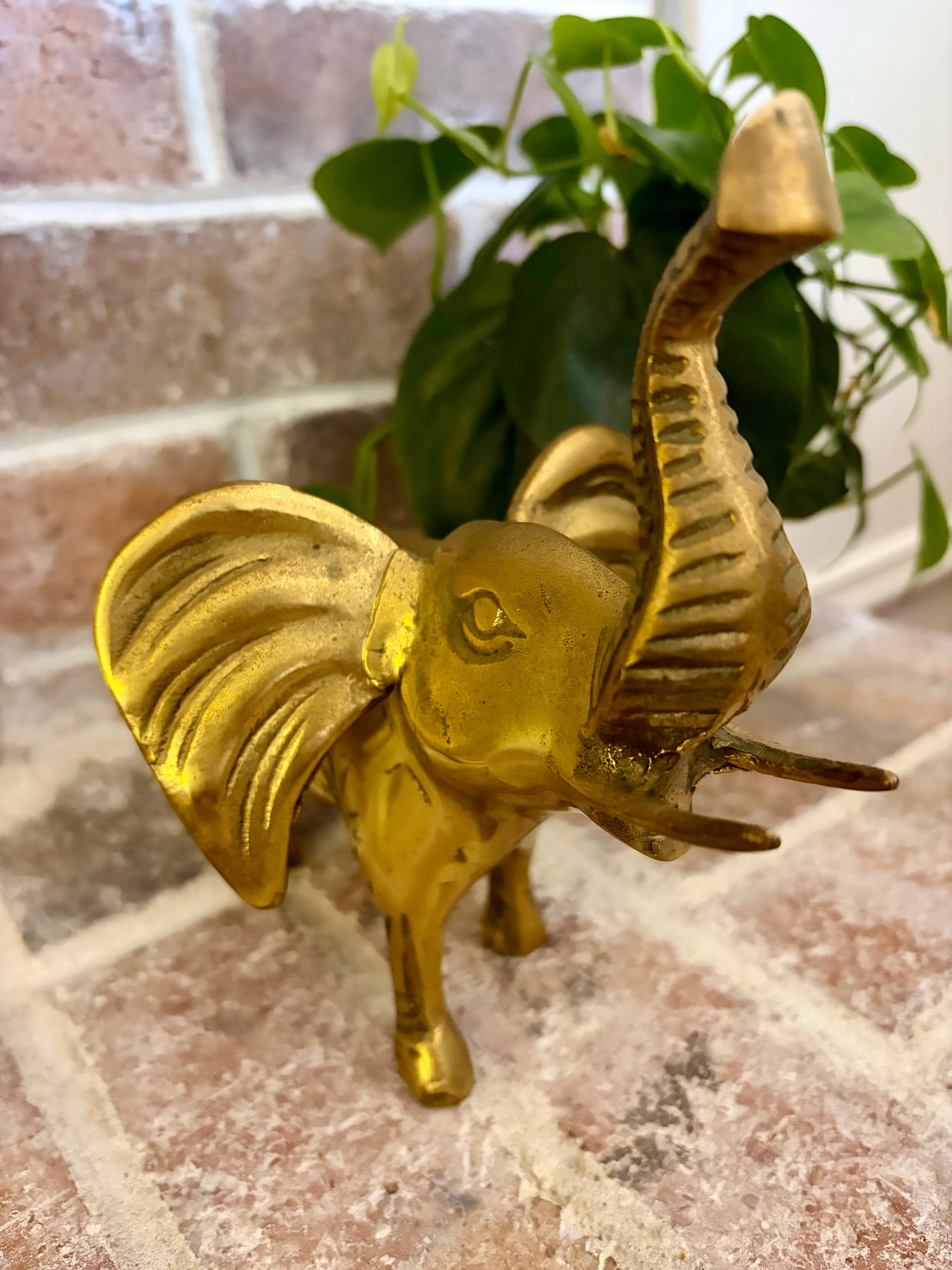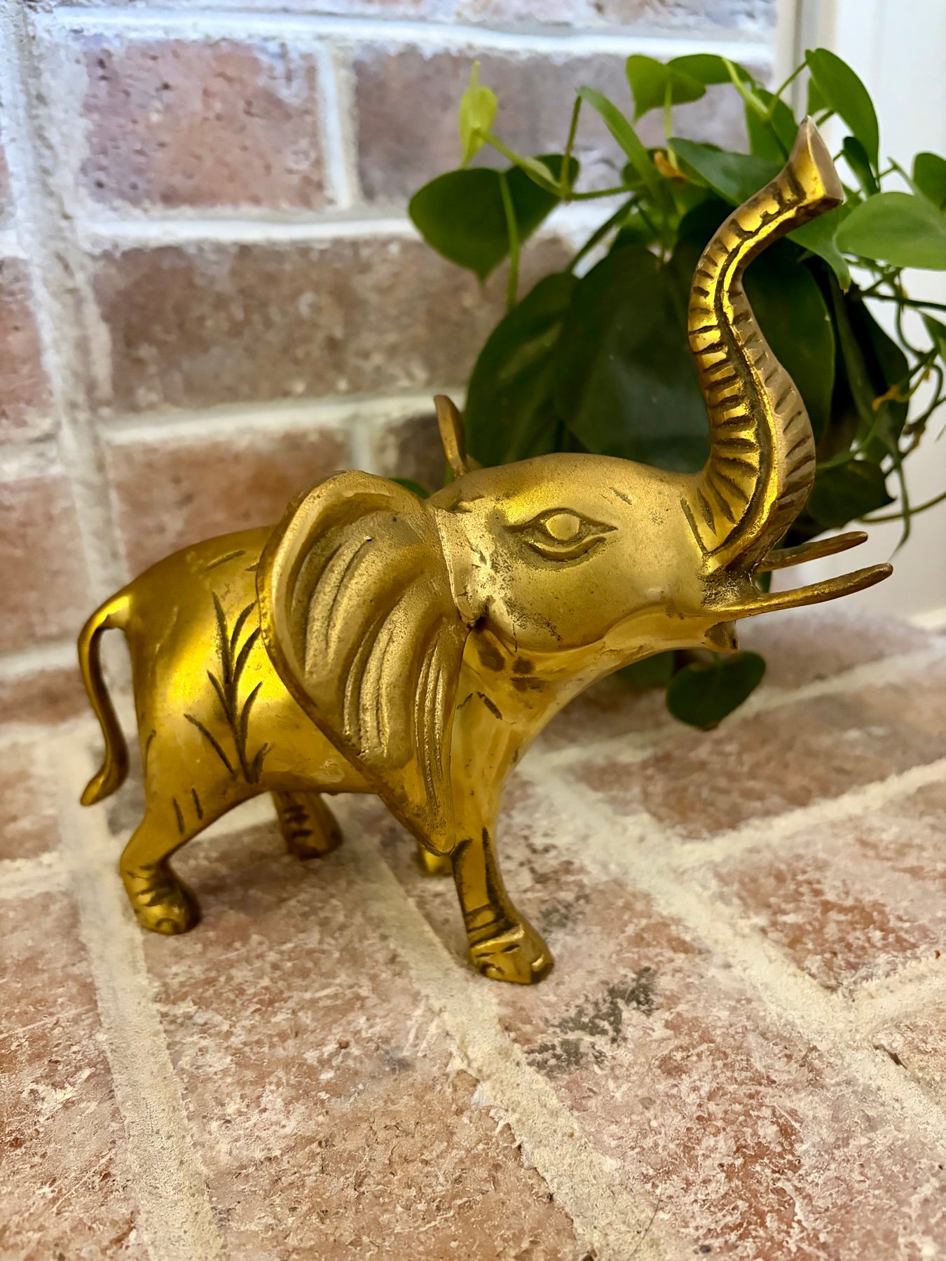 Bring a little luck and a lot of charm! This gleaming brass elephant measures 8 inches from trunk to tail, making it the perfect statement piece for shelves or desks. Bold, shiny, and ready to march into your decor.