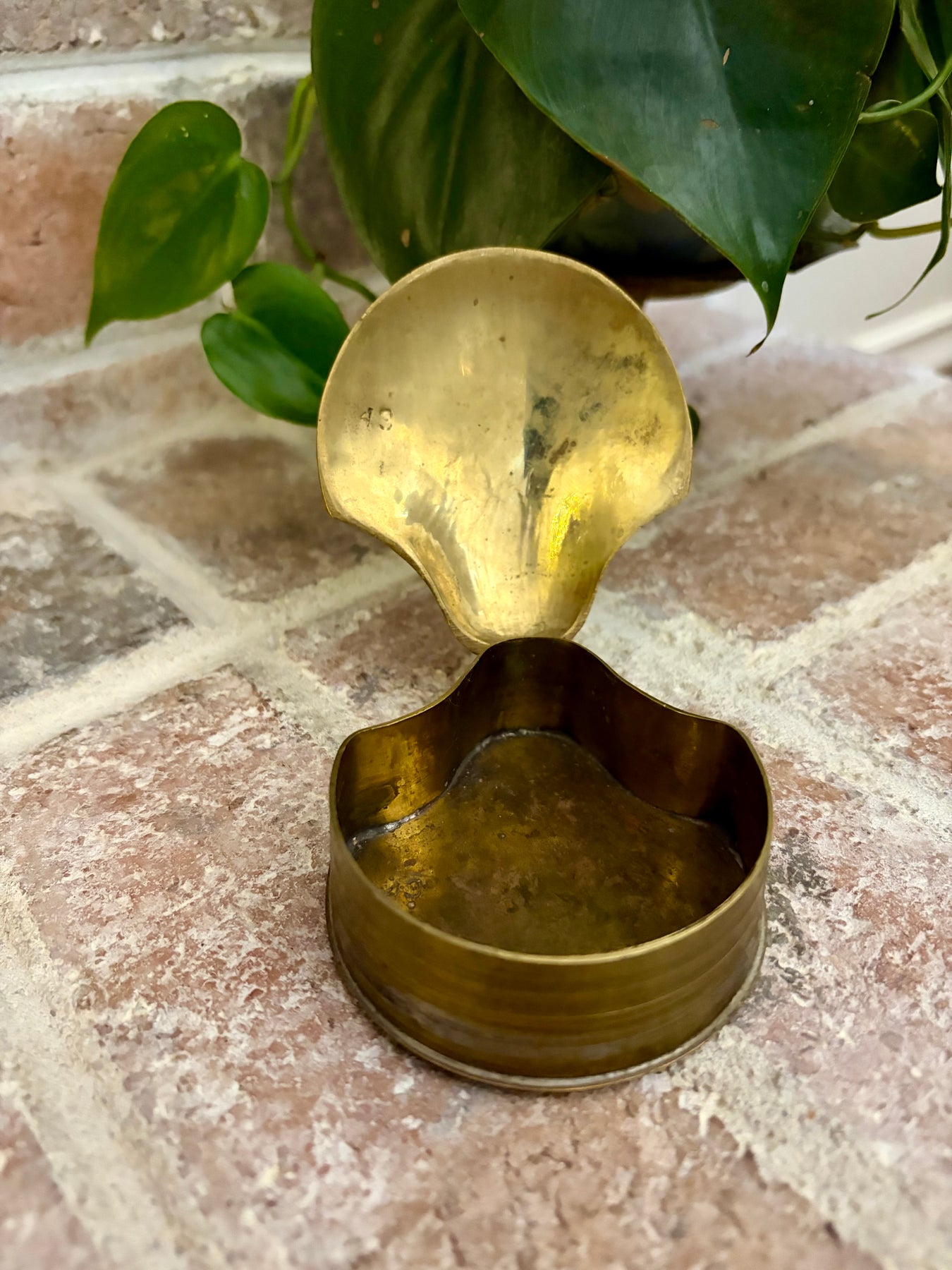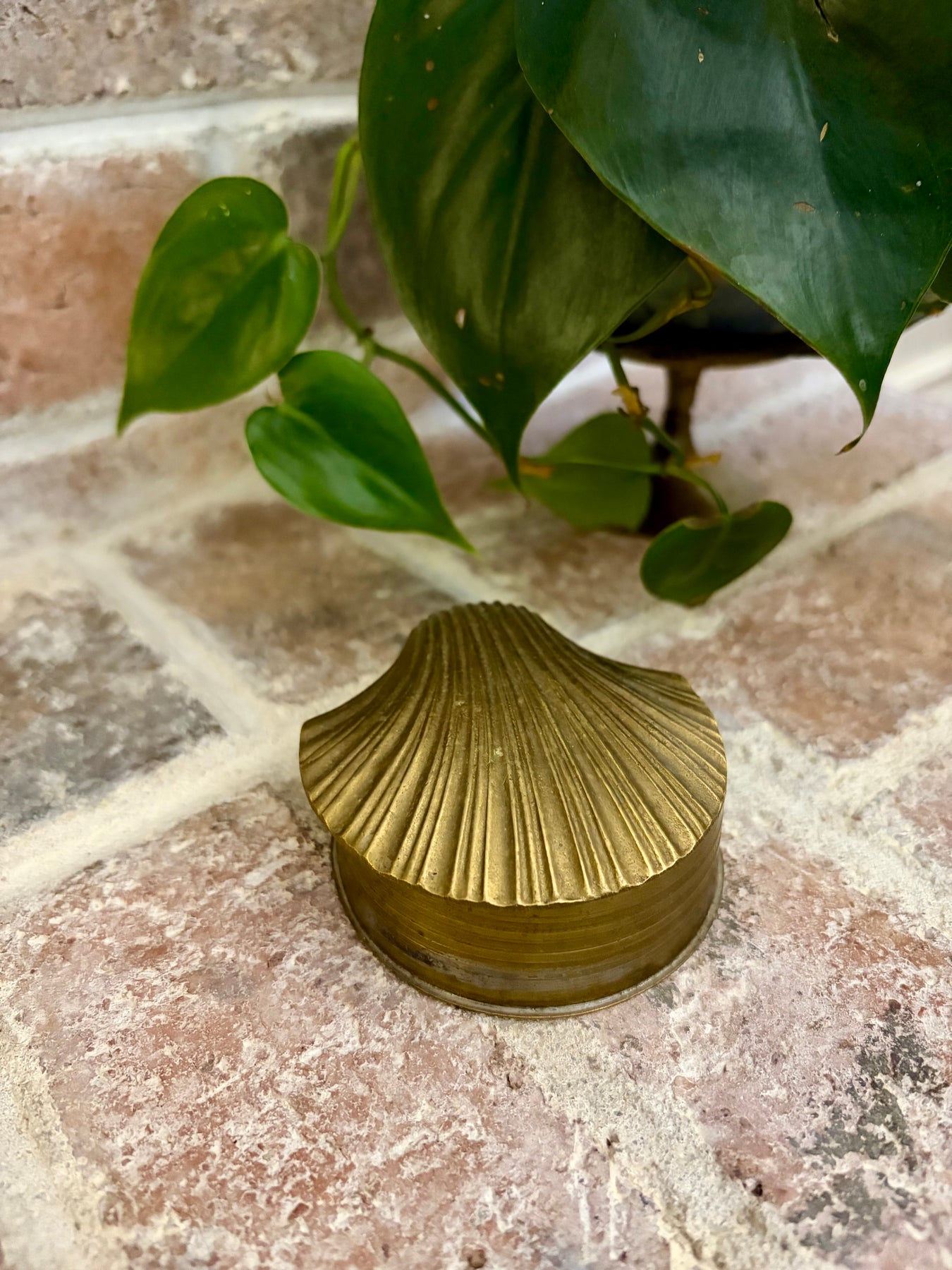 A shiny little seashell with big personality! At 3 inches across, this brass beauty is perfect for hiding rings, charms, or tiny secrets. Small, stylish, and ready to make waves on your dresser.