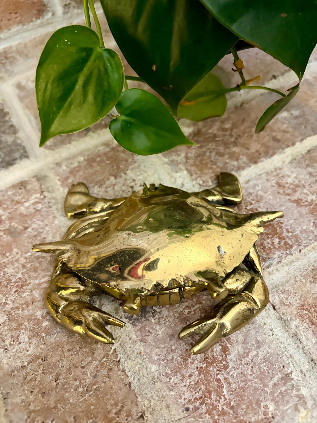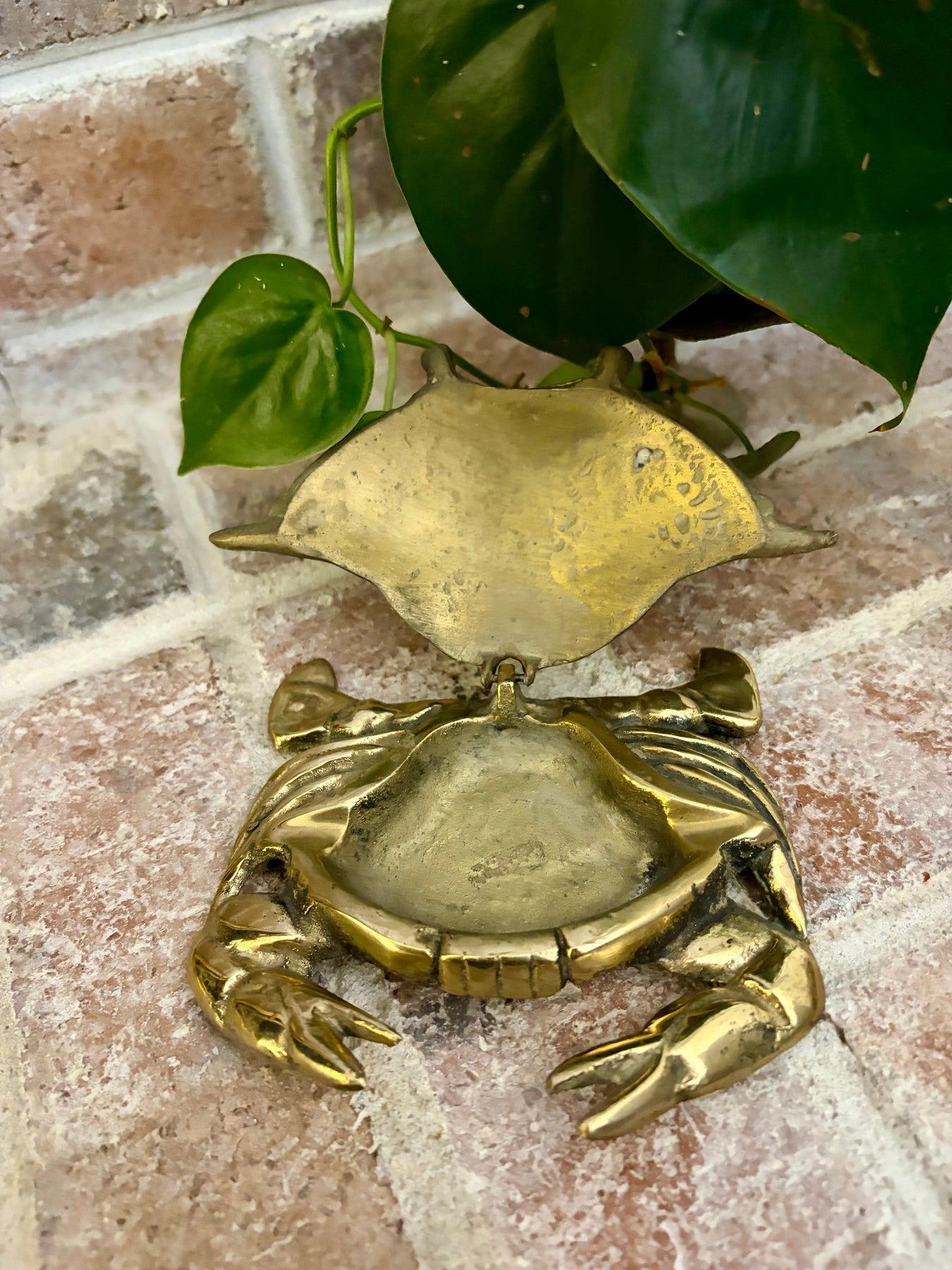 A coastal treasure with a clever twist! This brass crab box measures five inches across from claw to claw and hides a secret compartment beneath its shell. Perfect for storing rings, trinkets, or tiny keepsakes, it combines playful design with polished elegance—ideal for adding seaside charm to any space.