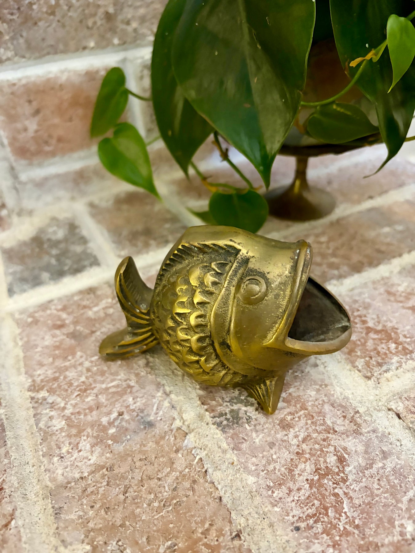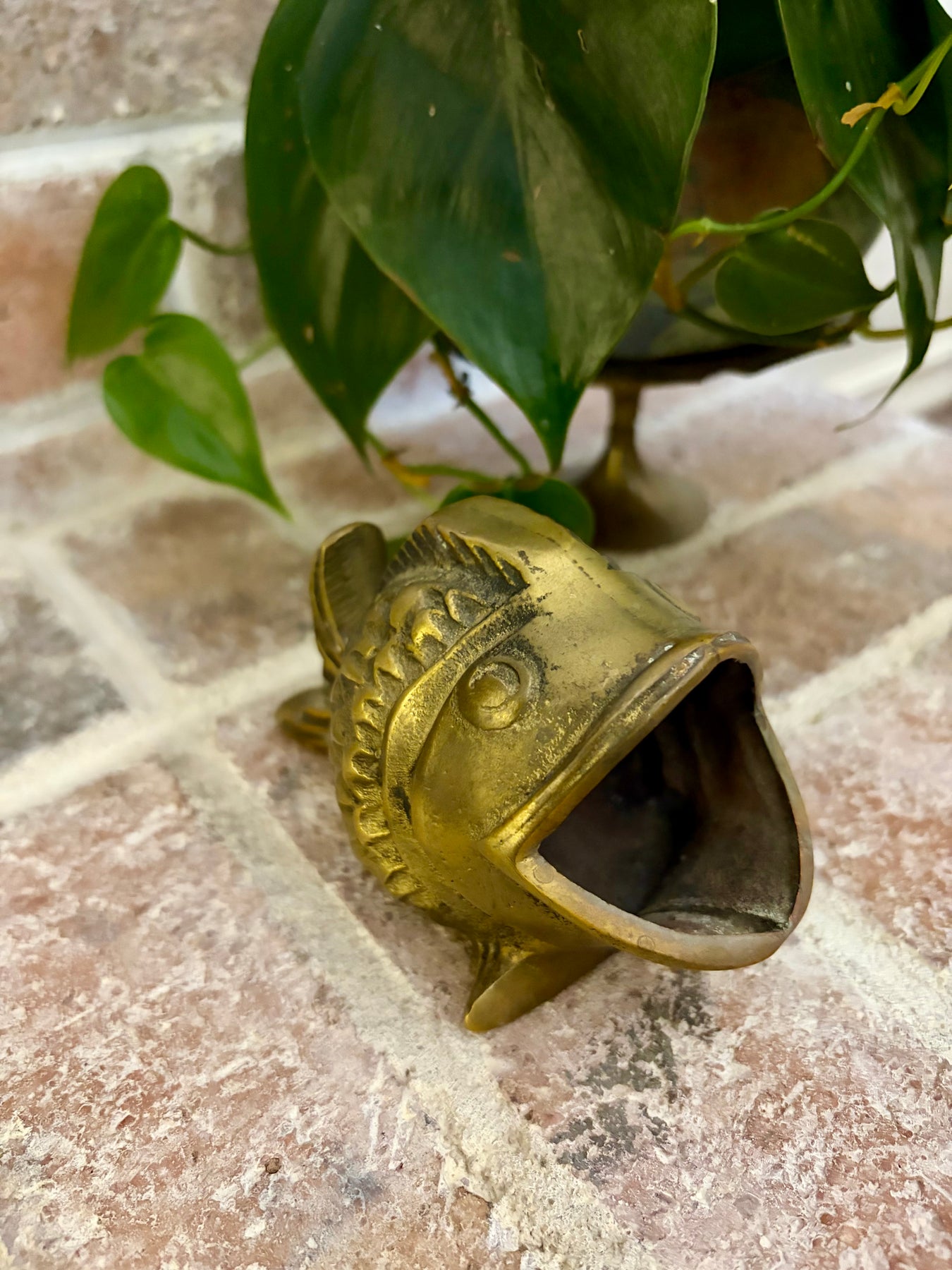 This brass fish, measuring four and a half inches from nose to tail, features an open mouth that’s perfect for holding matches, toothpicks, or tiny treasures. Its sleek design and coastal vibe make it a stylish accent for any table or mantel.