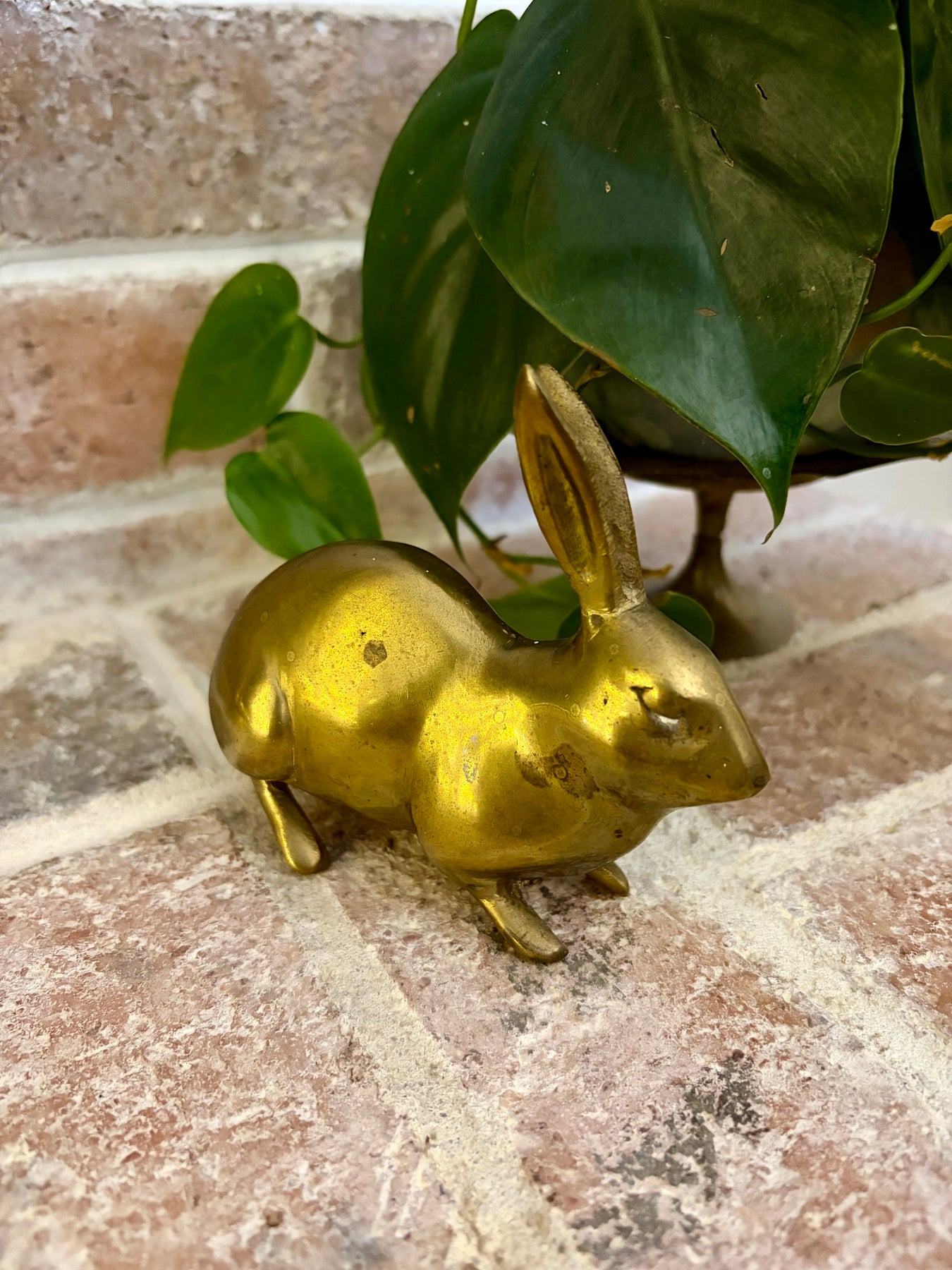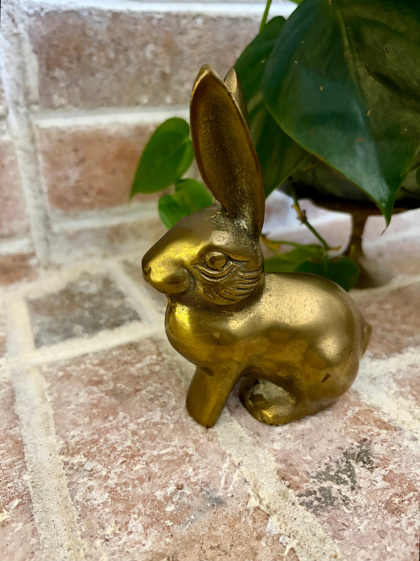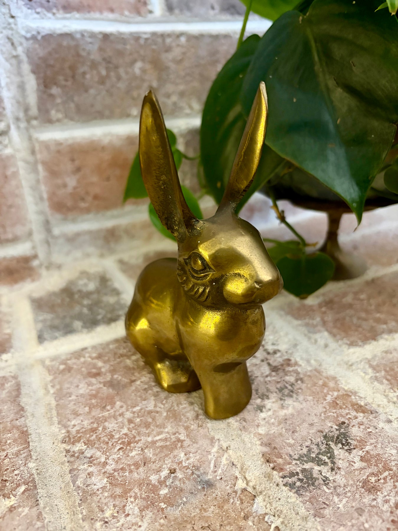 Hop into charm! This polished brass bunny stands five inches tall from its paws to the tips of its perky ears. With a sleek finish and playful pose, it’s the perfect accent. A delightful mix of whimsy and elegance for any space.
