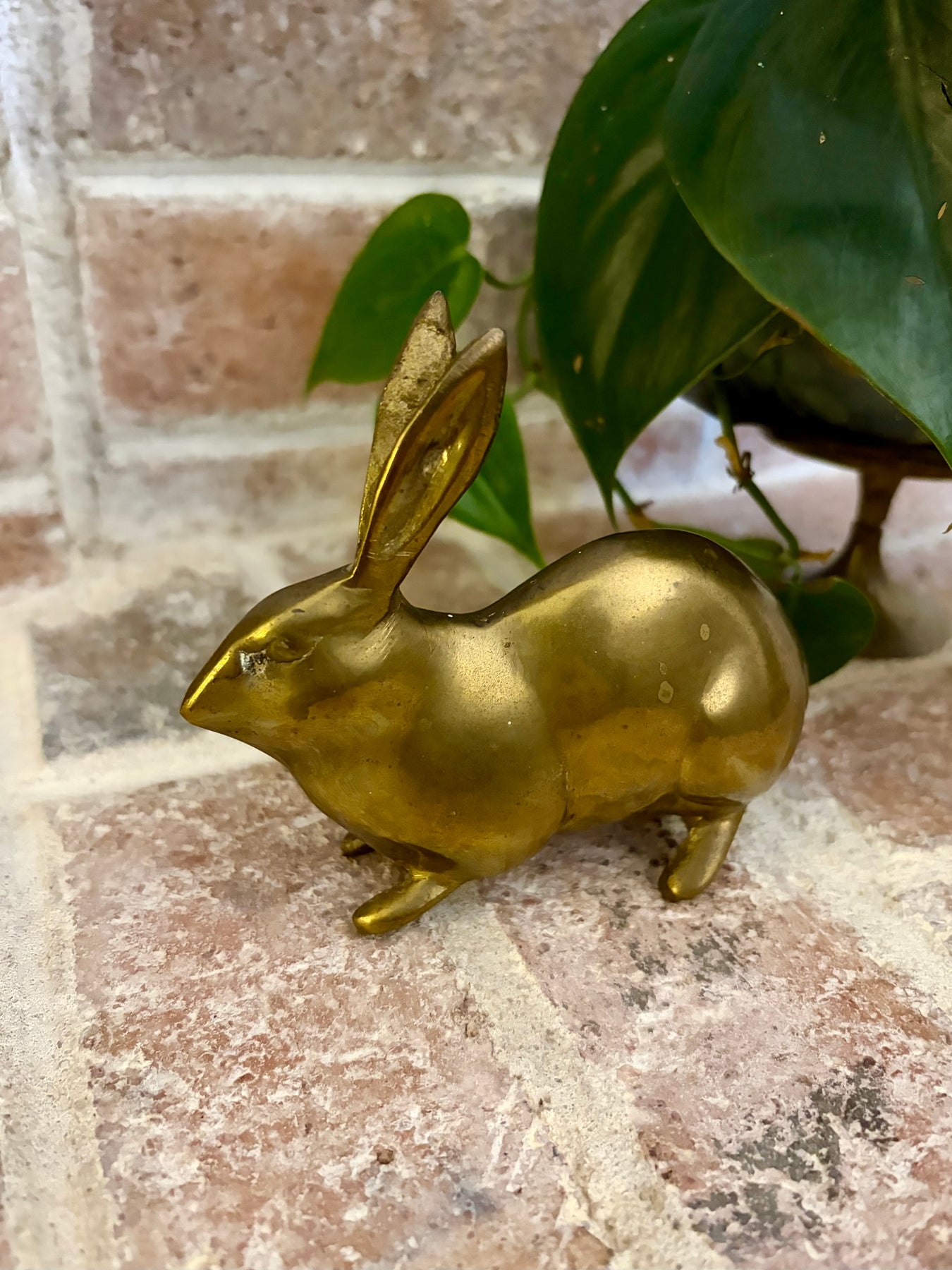 Cute and classy! This polished brass bunny measures four and a half inches from its nose to its cotton tail, making it the perfect little accent for shelves, desks, or seasonal décor. With its smooth finish and charming details, it adds a touch of whimsy and elegance to any space.