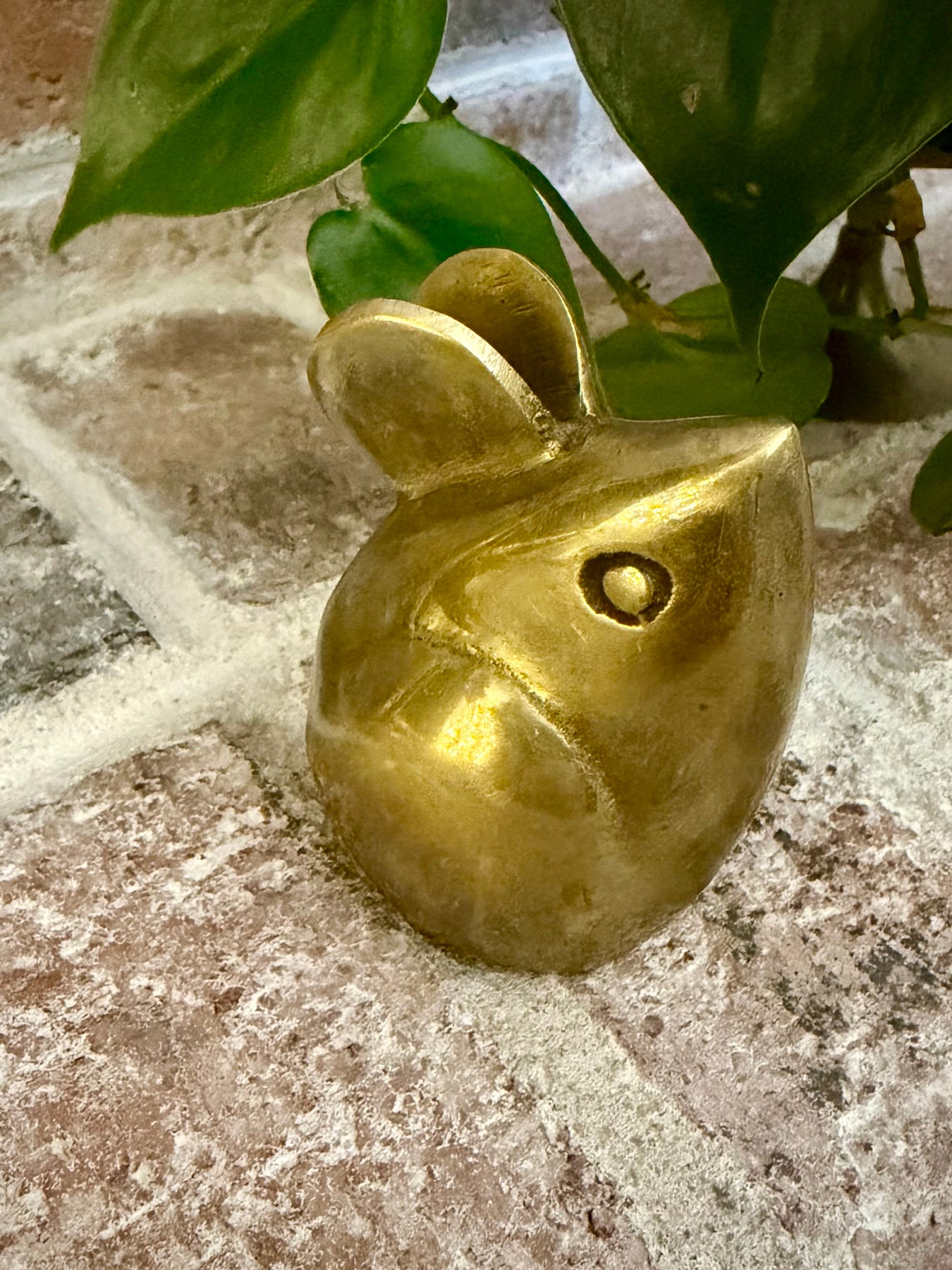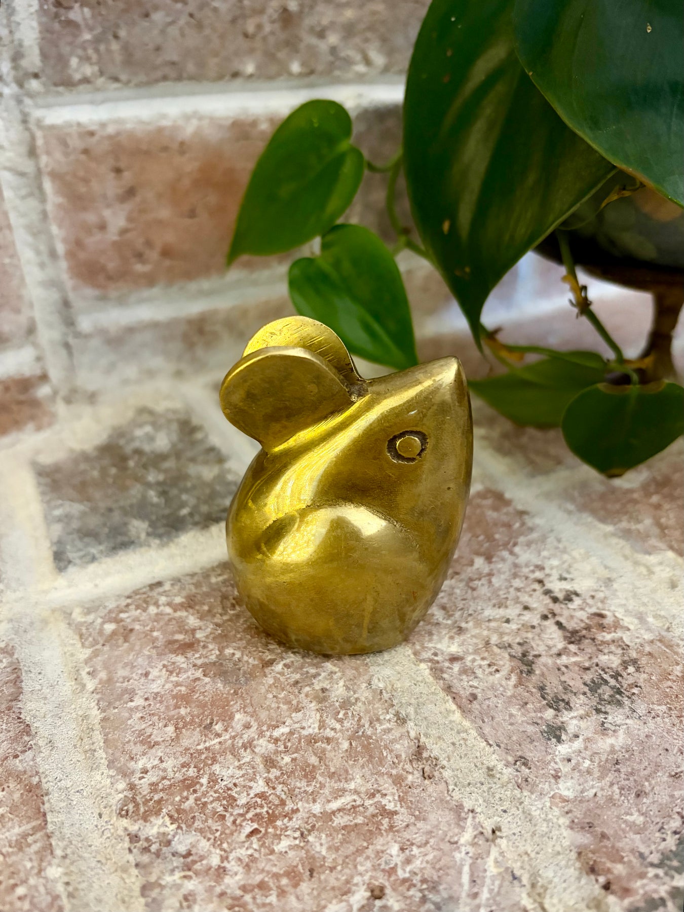 Small but mighty in charm! This shiny brass mouse measures three inches long, making it the perfect whimsical accent for a desk, shelf, or curio cabinet. Its sleek finish and adorable details bring a touch of personality to any space.