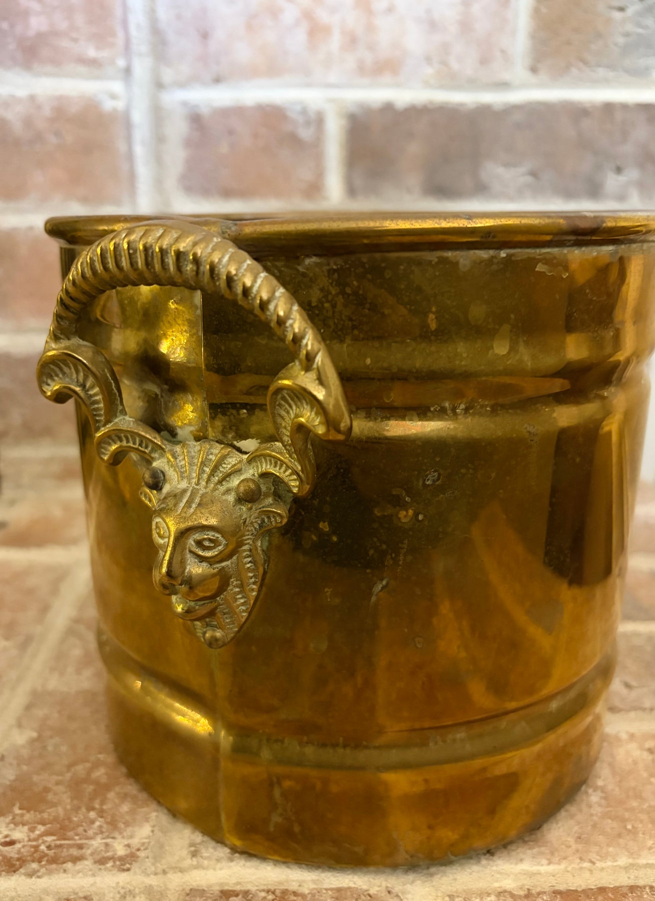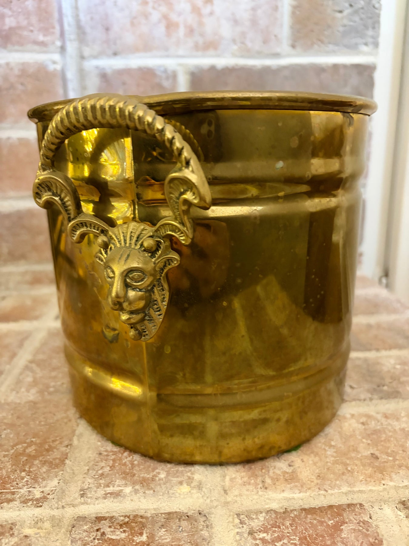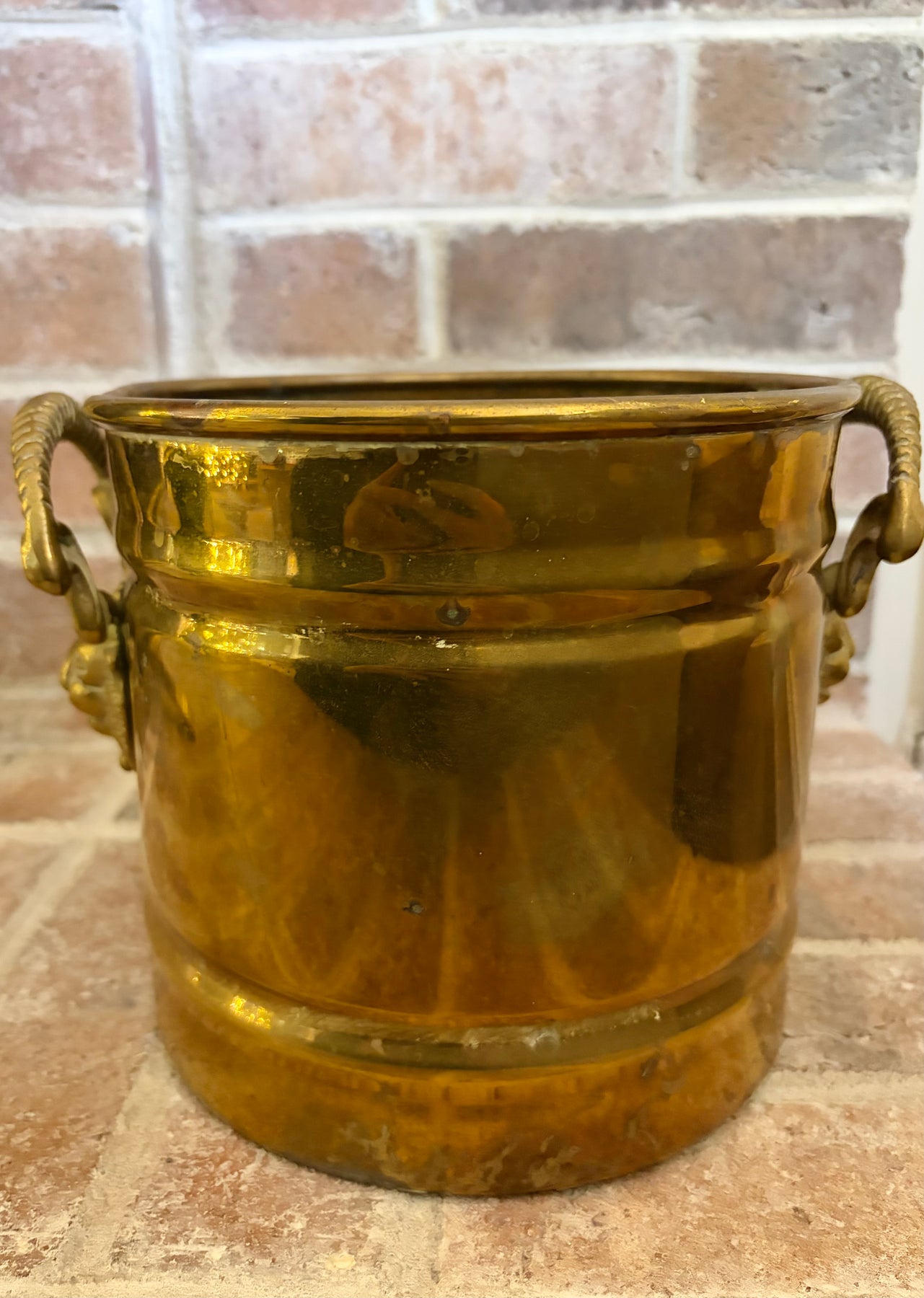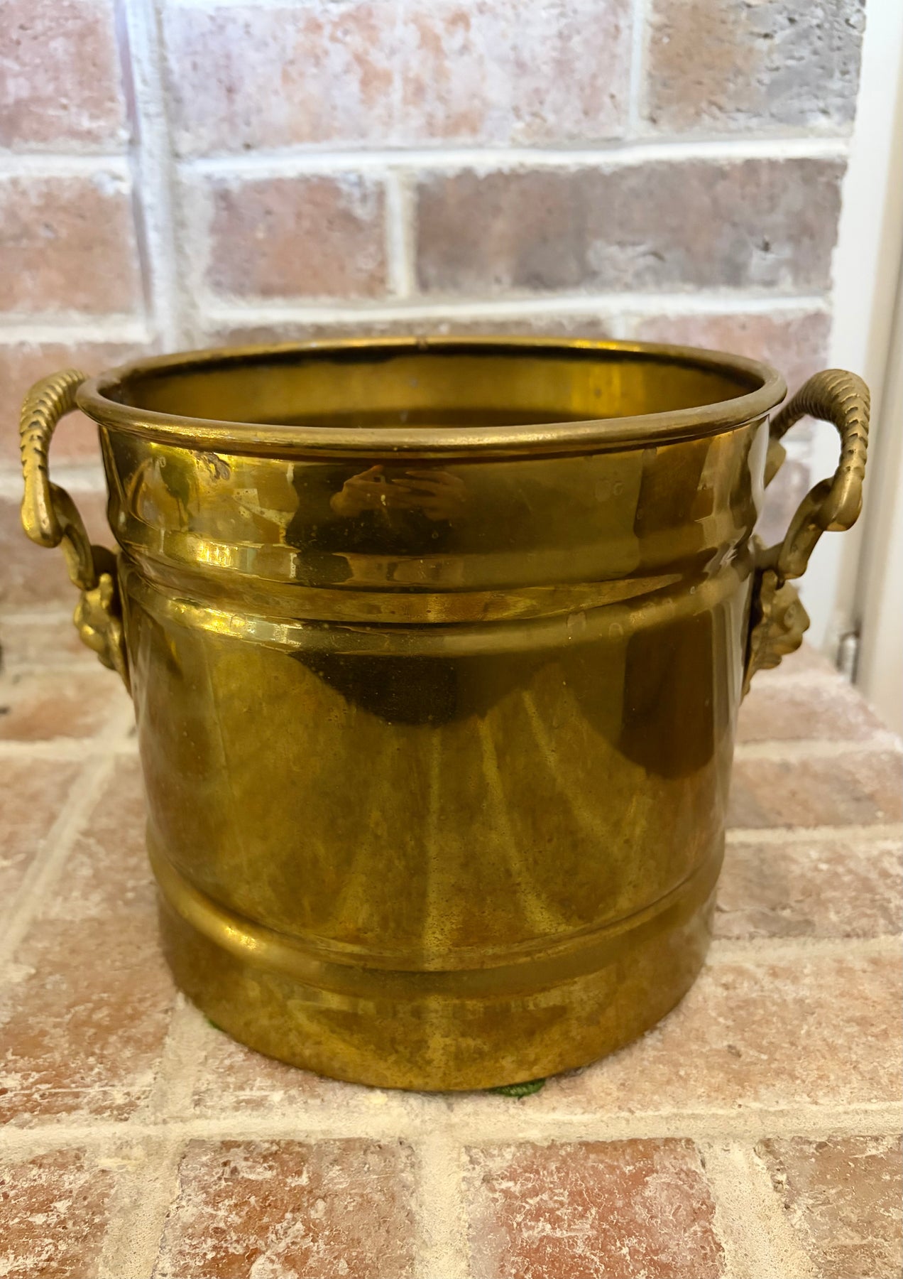 Make a bold statement with this stunning solid brass planter! Measuring seven inches tall and seven inches across, it features classic lion head handle details for a touch of regal charm. Perfect for showcasing lush greenery from Good Roots, its warm golden finish adds timeless elegance to any space.