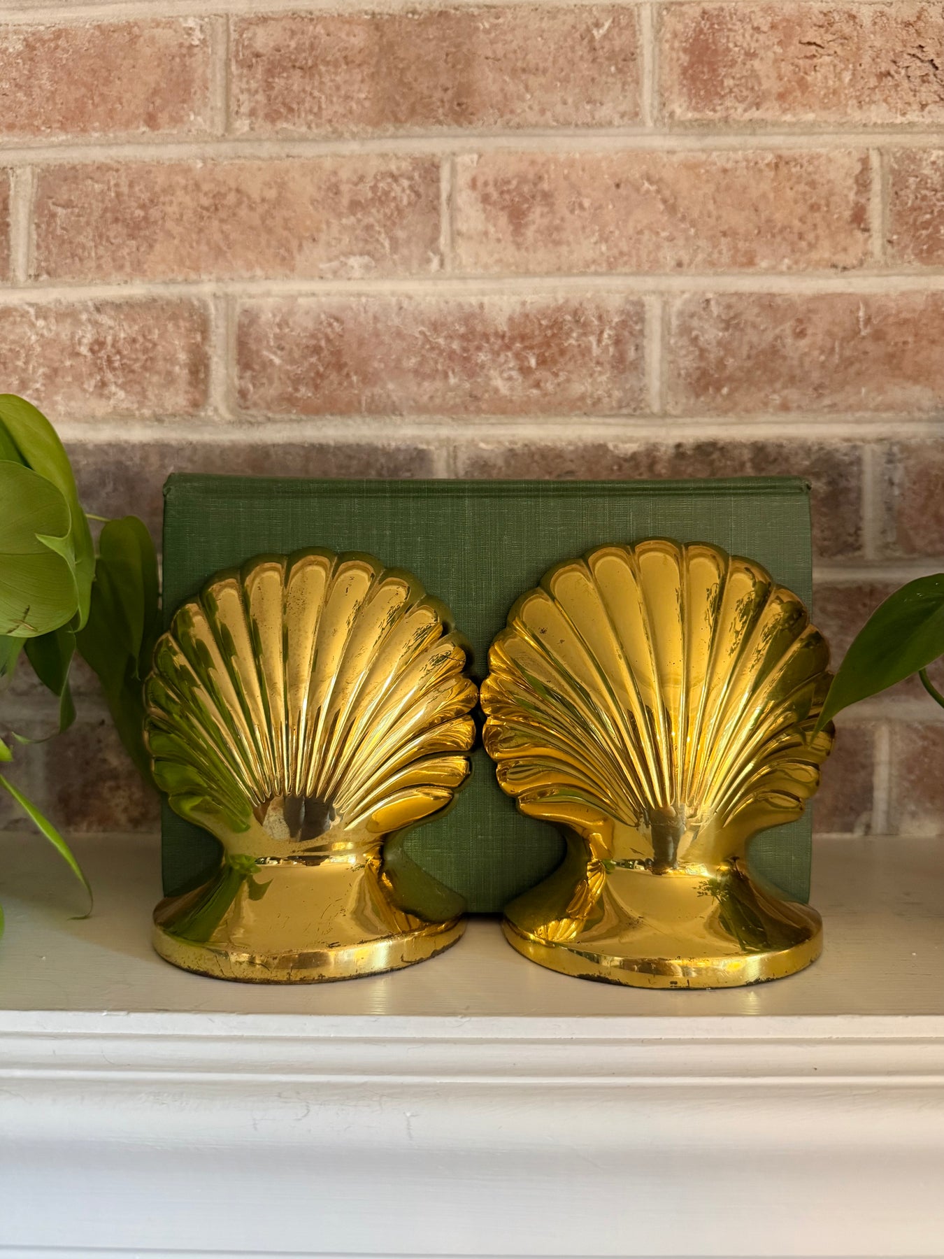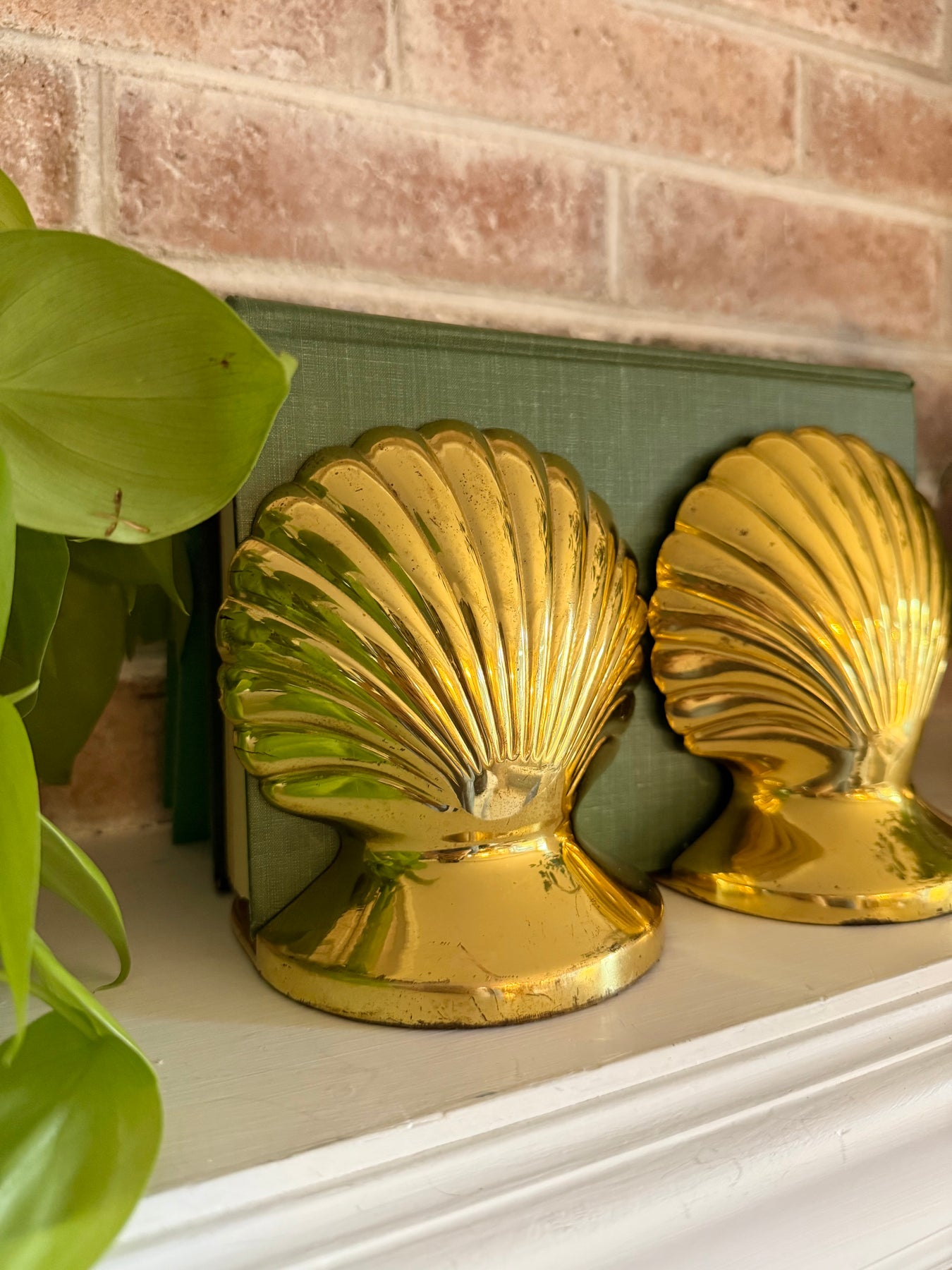 Make a splash on your shelves! These polished brass shell bookends stand 6 inches tall, bringing seaside sparkle and coastal charm to your favorite read.