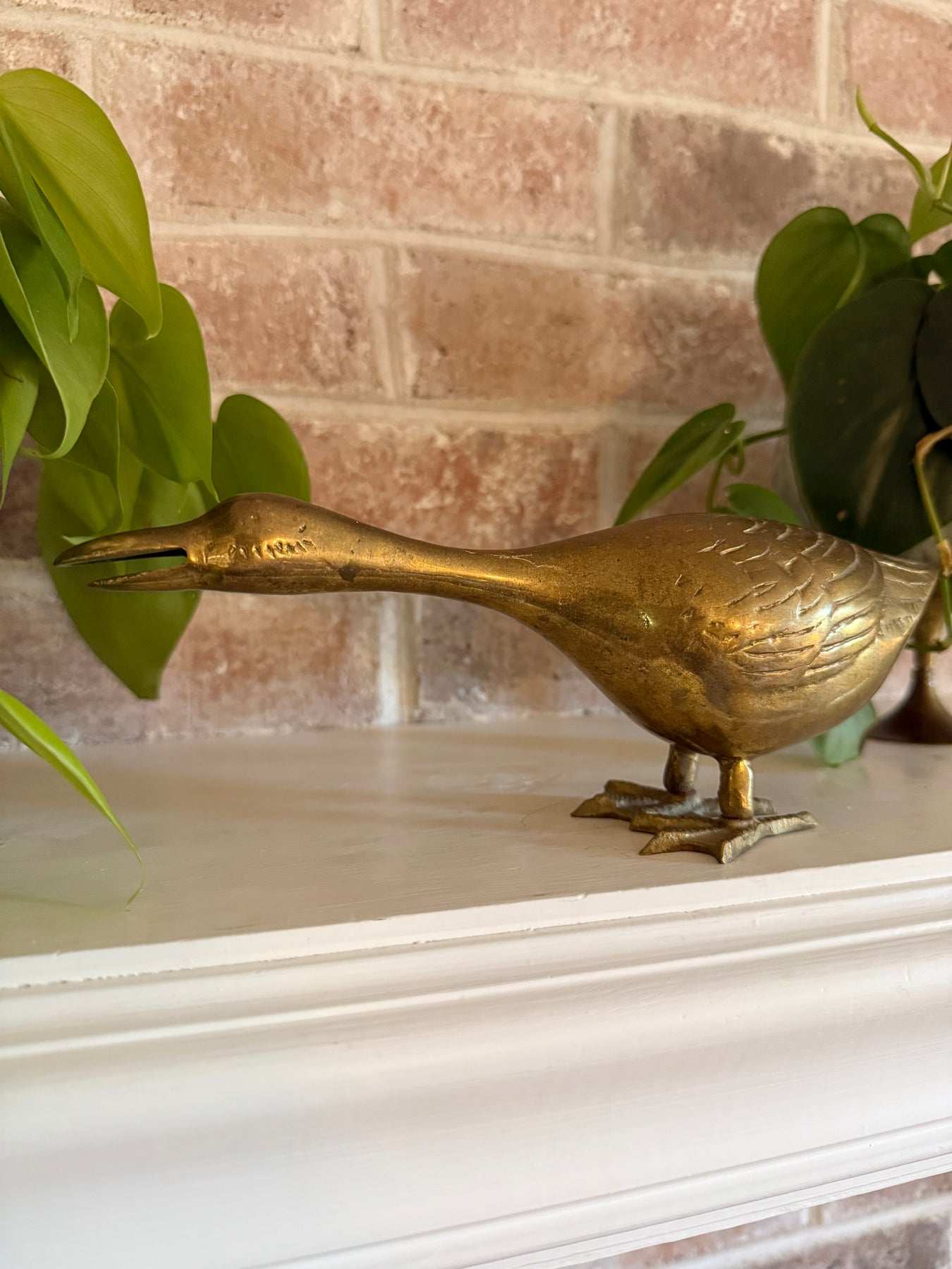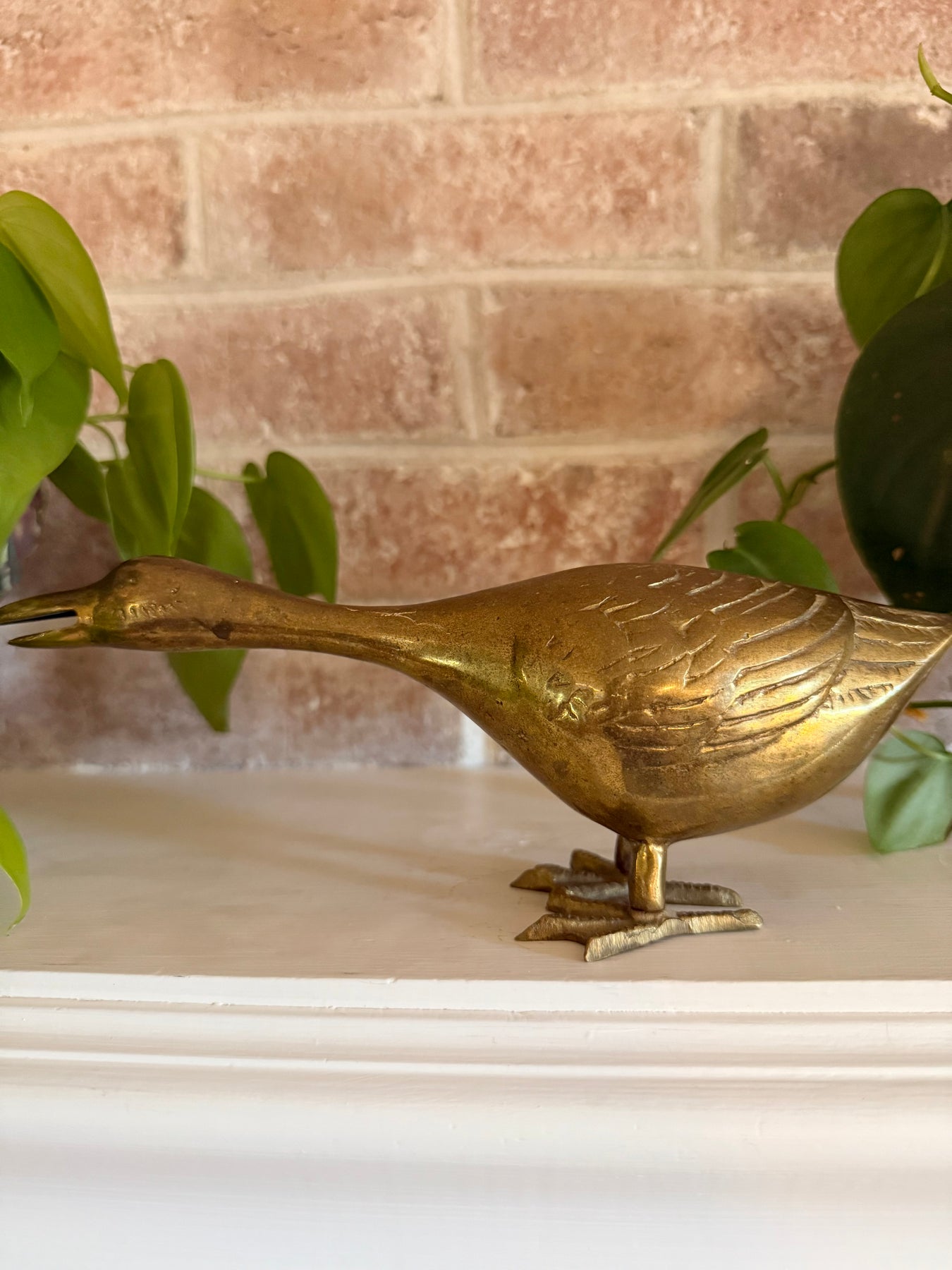 This silly goose stretches 9 inches from tail to beak, with its brass tone bringing warmth to your space. With its quirky charm and graceful form, it’s ready to waddle its way into your home.