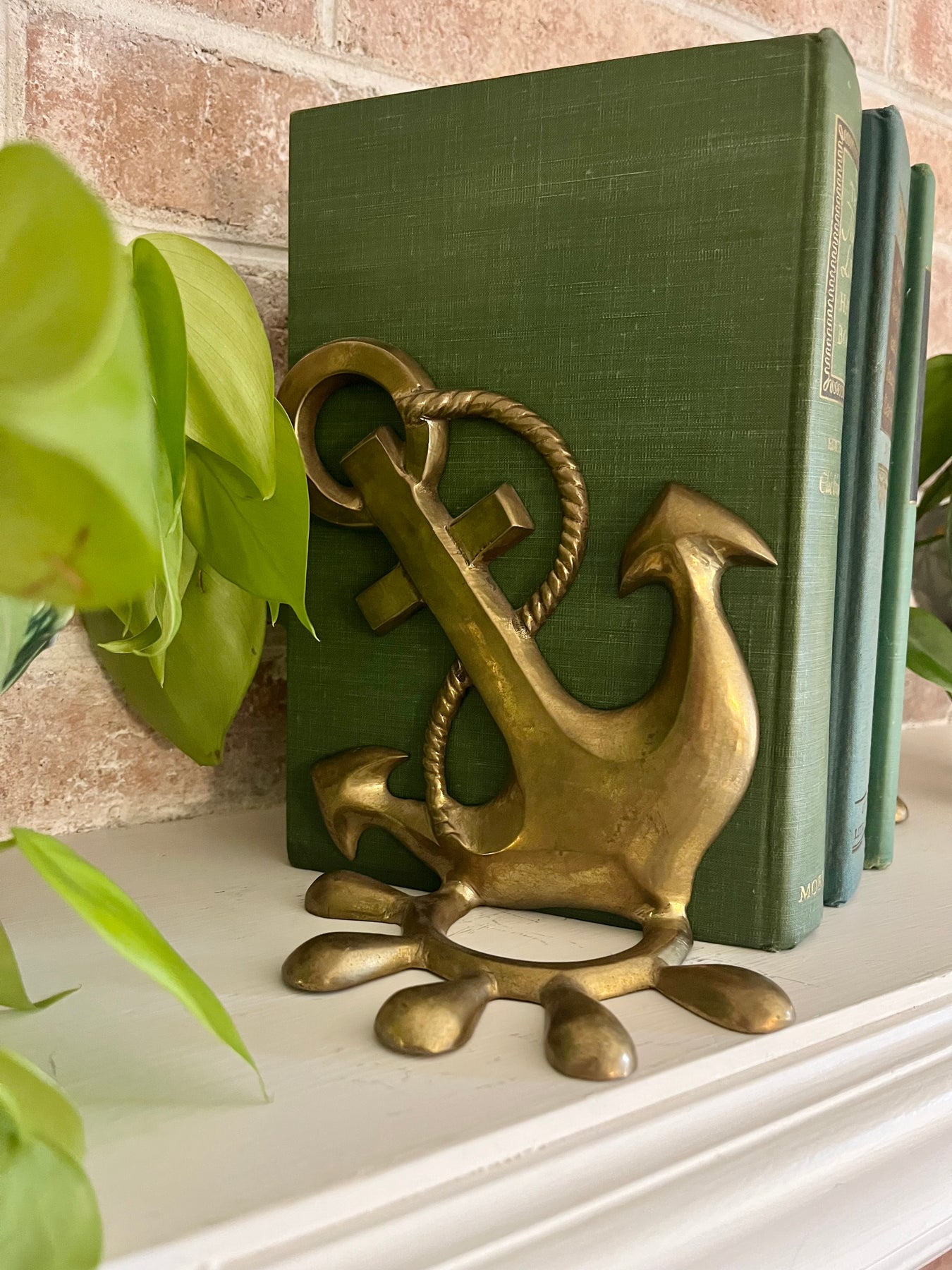 Bring a touch of nautical charm to your shelves with these brass anchor bookends. Standing 6 inches tall, their classic design makes them a sturdy and stylish way to keep your favorite books in place—perfect for any space.
